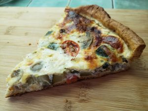 - dans un saladier, mélangez activement les oeufs, le lait, le yaourt, la muscade, le poivre puis ajoutez le à la tarte